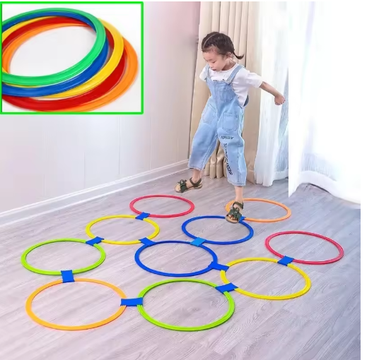 ألعاب رياضية مضحكة للتدريب البدني للأطفال في الهواء الطلق مجموعة حلقات القفز الشبكية مع 10 أطواق 10 موصلات للعب الحديقة للأولاد والبنات