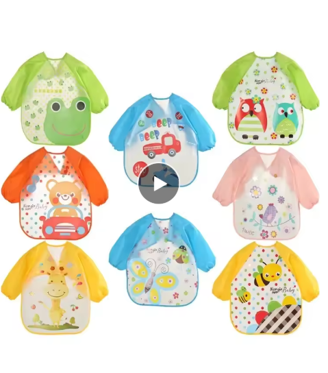 مقاوم للماء إيفا كم كامل الطفل المرايل الأطفال المئزر طويلة الأكمام تغذية سموك الاطفال الأكل الصدر وشاح الرضع الملابس
