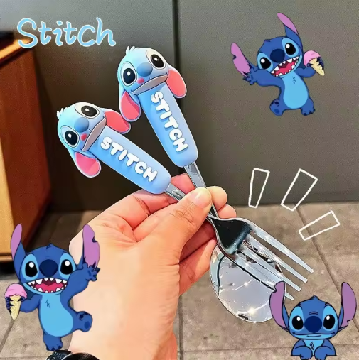 2 قطعة ديزني أنيمي غرزة الاطفال ملعقة شوكة الأطفال المحمولة مجموعة أدوات المائدة 304 لطيف غرزة ملعقة شوكة بنين بنات هدايا اللعب