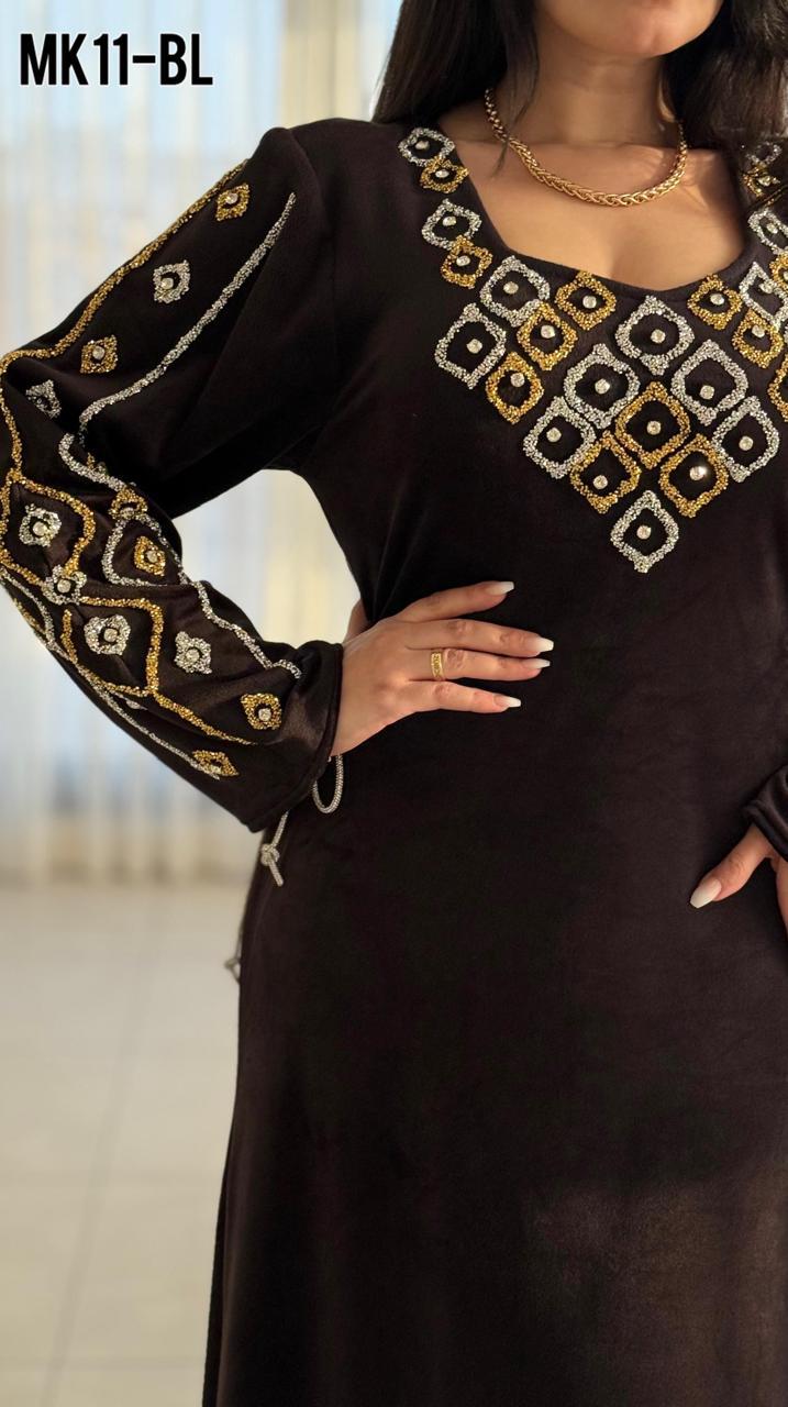 جلابية مخمل مبطن اسودm11